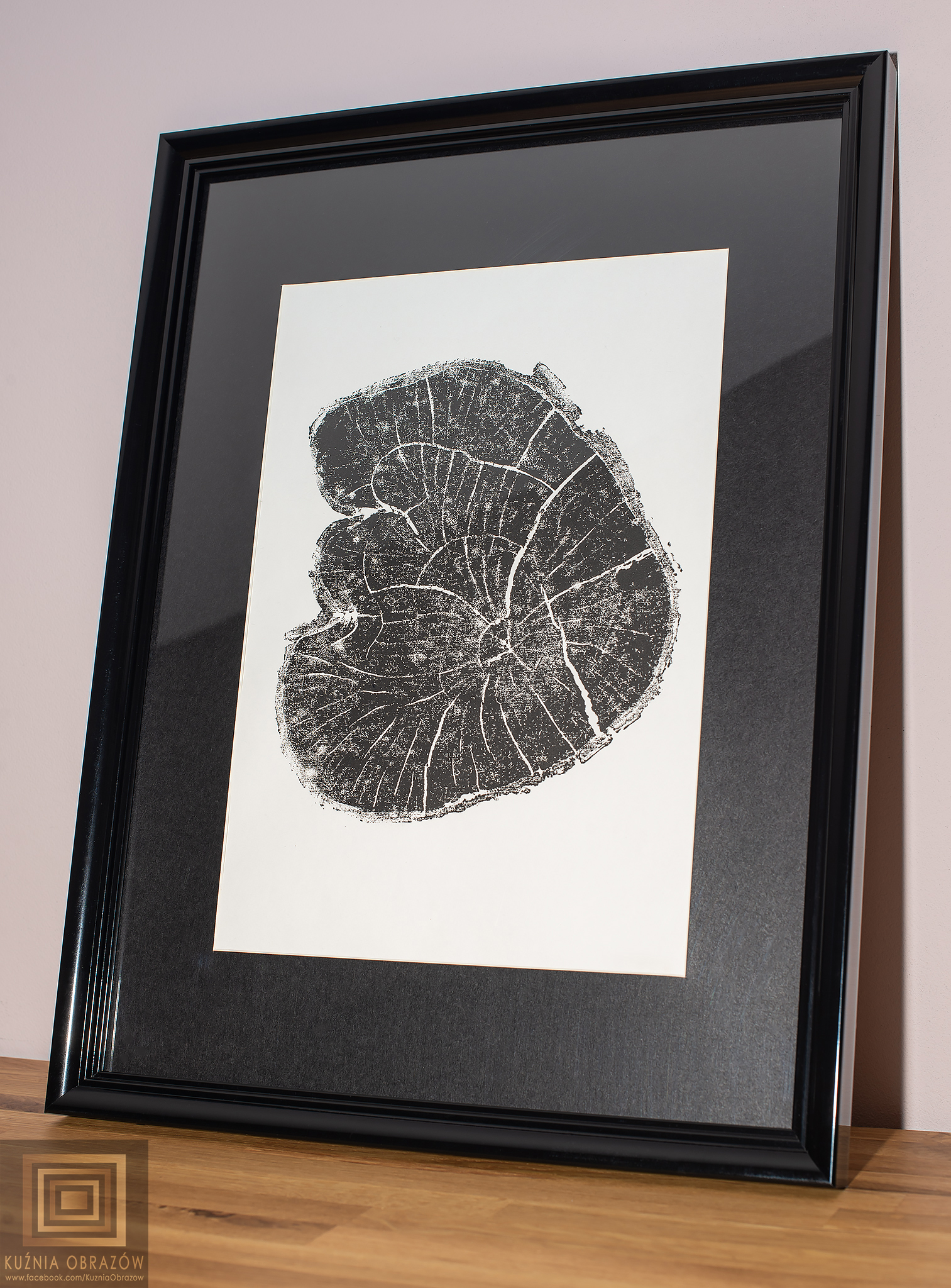 Całość została oprawiona w czarną ramę (30x40 cm) z czarnym passepartout i oszkleniem, co podkreśla głębię kompozycji i nadaje jej nowoczesny, minimalistyczny charakter.