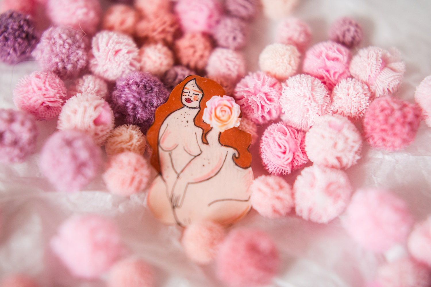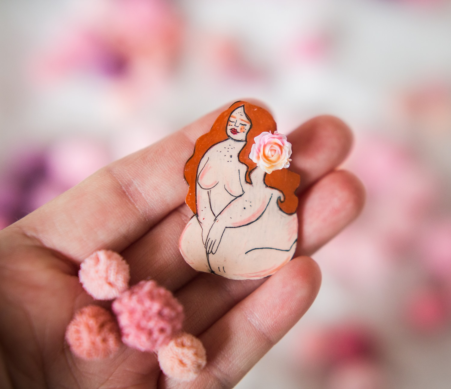 Broszka Agata przedstawia piękną kobietę o rubensowskich kształtach. Broszka jest hołdem dla ciałaopozytywności :)